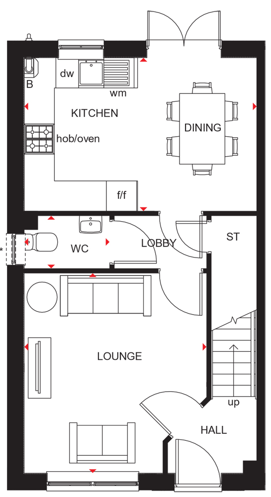 The 3 bedroom Ellerton features a large window to the front of the lounge, allowing lots of natural light.The open-plan kitchen with dining space includes French doors that lead out to the rear garden and provides a great space for entertaining by allowing for the indoors and out to flow seamlessly.