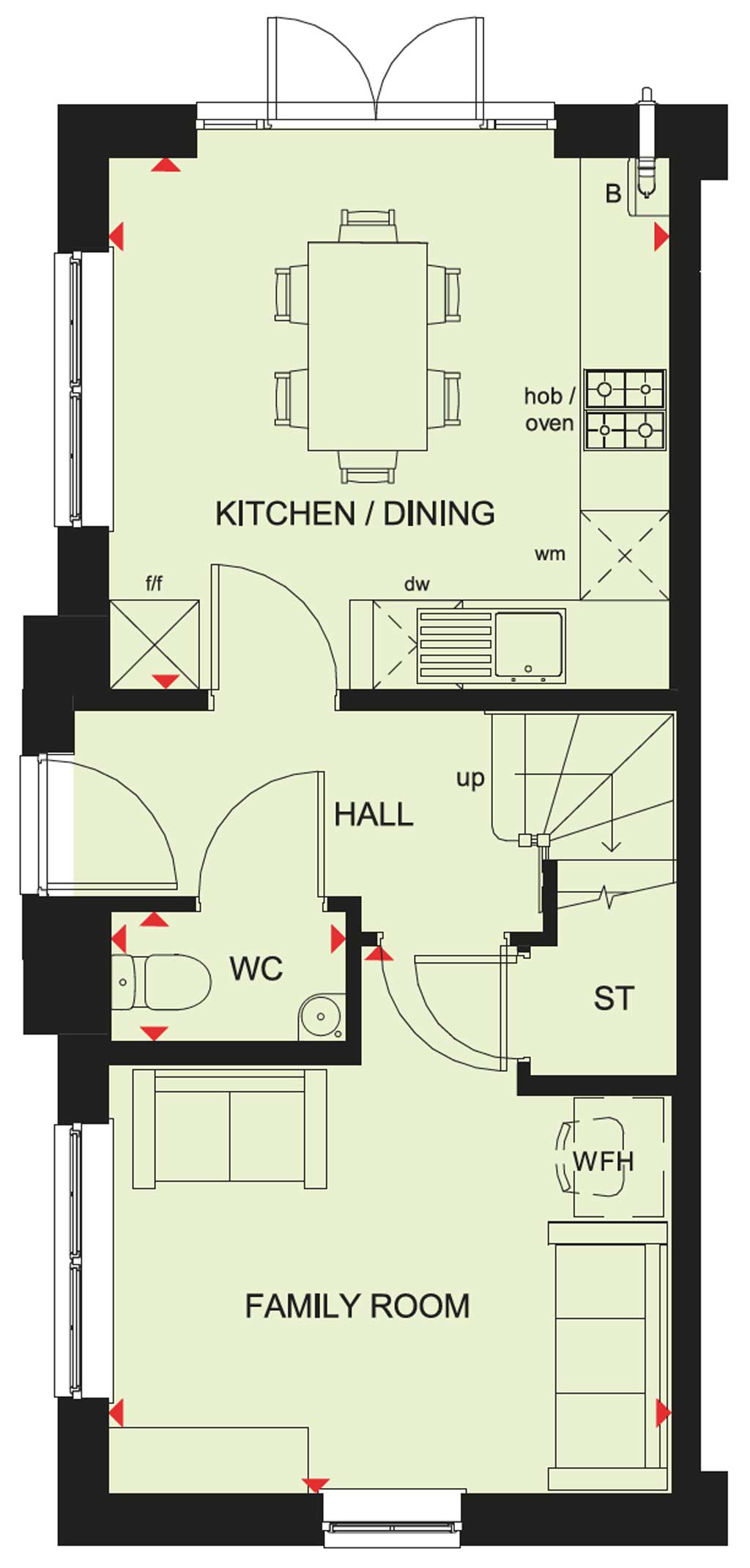 The Brentford is a bright family home designed over three floors. The ground floor features an open-plan kitchen with dining area and French doors leading onto the garden. The first floor featurs a spacious lounge, a double bedroom and the family bathroom. Two double bedrooms, the main bedroom with dual-access shower room are on the top floor.